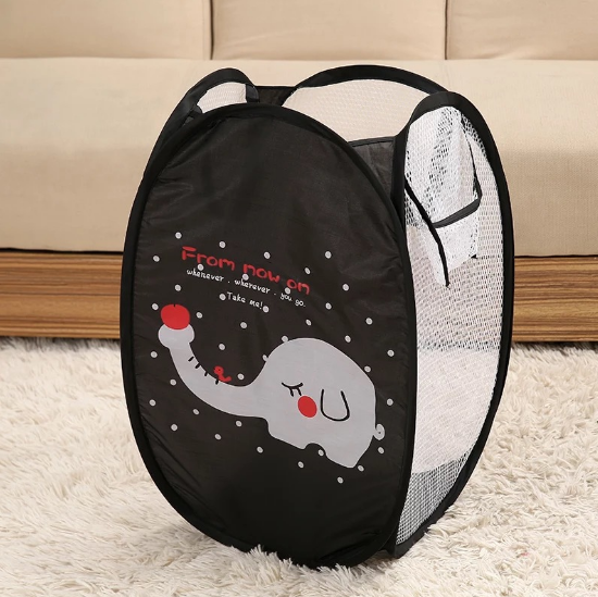 Яскрава і зручна корзина для зберігання іграшок. В складеному вигляді дуже компактна, зручна для транспортування та використання в будь-якому місці. Тканина: нейлон і сітка.